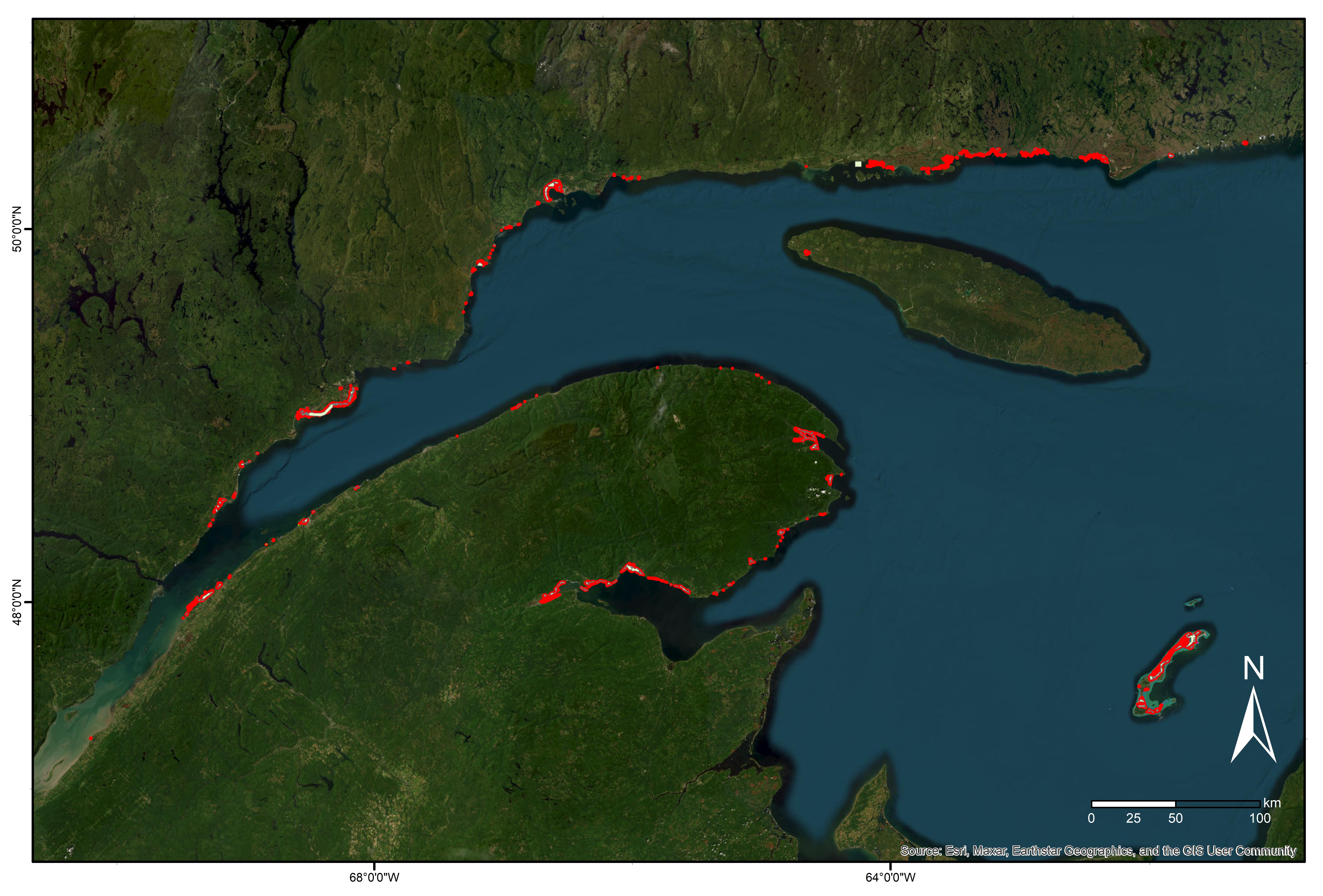 Description: #FrançaisCe jeu de données de format shapefile a été conçu à partir des polygones extraits de la géodatabase Cartographie des écosystèmes côtiers du Québec maritime (2022, Laboratoire de dynamique et de gestion intégrée des zones côtières, Pêches et Océans Canada), décrit dans le paragraphe ci-après. Il est constitué des polygones comportant de la zostère marine et rassemble les attributs décrivant la couverture végétale, la composition des herbiers, le nom de l’écosystème, les données d’imagerie ayant permis la photo-interprétation et la présence ou non de données de terrain. Un numéro séquentiel unique associé à chaque polygone permet de retracer le polygone apparié de la géodatabase des écosystèmes côtiers pour connaître les valeurs d’attributs non détaillé dans le présent shapefile. La région d’étude comprend l’ensemble des littoraux estuariens et maritimes du Québec, à l’exception de certains secteurs dont la majeure partie de la Basse-Côte-Nord et de l’Île d’Anticosti, à l’exception des villages de Kegaska, la Romaine, Chevery, Blanc-Sablon et Port-Menier. Certaines îles au large des côtes de l’estuaire et du golfe font parties de la région couverte, telles que l’Île d’Orléans, l’Isle-aux-Coudres, l’Île Verte et l’Île Bonaventure.Le projet de Cartographie des écosystèmes côtiers du Québec maritimea été réalisée conjointement par le Laboratoire de dynamique et de gestion intégrée des zones côtières (LDGIZC) de l’Université du Québec à Rimouski dans le cadre du Projet Résilience côtière; et par l’équipe de Pêches et Océans Canada, dans le cadre de l’initiative Planification pour une Intervention Marine Intégrée (PIMI) du Plan de Protection des Océans (PPO). Dans le cadre de ce projet, une classification des écosystèmes côtiers a été réalisée sur plus de 4 200 km de corridor côtier, avec pour sujet les littoraux estuariens et maritimes du Québec situés entre la limite du haut-estran et l'infralittoral peu profond (environ 10m de profondeur). La méthode de cartographie développée s’appuie sur une segmentation et classification semi-automatisée et une photo-interprétation des écosystèmes côtiers, à partir de photographies multispectrales (RBVI) à très haute résolution (30 cm) acquises entre 2015 et 2020 par le MPO. La classification des entités surfaciques (polygones) s'appuie sur l'attribution de classes de valeurs pour les attributs biologiques et physiques à l'étude (par ex. étagement, substrats, type végétaux, couverture de la végétation, géosystème, etc.). Des photographies obliques héliportées et des données de terrain ont contribué à réduire l’incertitude associée au travail de photo-interprétation. L'UQAR et le MPO ont mené des campagnes d'échantillonnage terrain visant respectivement le médiolittoral (4 390 stations) puis la zone médiolittorale inférieure et infralittorale (2 959 stations), ce qui a permis de valider certains attributs identifiés par photo-interprétation et d'apporter une information détaillée sur la structure des communautés. La géodatabase de la Cartographie des écosystèmes côtiers est hébergée et diffusée par l'UQAR sur la plateforme cartographique SIGEC-Web:https://ldgizc.uqar.ca/Web/sigecweb#EnglishThis shapefile dataset was designed using polygons extracted from the Cartography of Coastal Ecosystems of Maritime Quebecgeodatabase (2022, Laboratory for Dynamics and Integrated Management of Coastal Zones, Fisheries and Oceans Canada), described in the paragraph below. It consists of polygons with eelgrass andincorporatesattributes describing the vegetation cover, the composition of the seagrass beds, the associated ecosystem name, the imagery data that allowed photo-interpretation and the presence or absence of field data. A unique sequence number associated with each polygon makes it possible to trace the paired polygon of the geodatabase of coastal ecosystems to attribute values not detailed in this shapefile. The study area includes all of the estuarine and maritime coasts of Quebec, with the exception of certain sectors, including most of the Lower North Shore and Anticosti Island, with the exception of villages of Kegaska, la Romaine, Chevery, Blanc-Sablon and Port-Menier. Some islands off the estuary and gulf coasts are part of the region covered, such as Île d'Orléans, Isle-aux-Coudres, Île Verte and Île Bonaventure.The Mapping of Coastal Ecosystems of Maritime Quebec was carried out jointly by the Laboratory for Dynamics and Integrated Coastal Zone Management (LDGIZC) of the University of Quebec at Rimouski as part of the Coastal Resilience Project; and by the Fisheries and Oceans Canada team, as part of the Integrated Marine Response Planning Program (IMRP). A classification of coastal ecosystems was carried out on more than 4,200 km of coastal corridor, focusing on estuarine and maritime coasts of Quebec located between the limit of the upper foreshore and the shallow infralittoral (about 10m deep). The mapping method developed is based on semi-automated segmentation and a photo-interpretation of coastal ecosystems, using very high resolution multispectral photographs (RBVI) acquired between 2015 and 2020 by DFO. The classification of polygons is based on the assignment of predefined value classes for the biological and physical attributes under study (e.g., substrates, plant type, vegetation cover, geosystem, etc. ). Helicopter-born oblique photographs and field data helped to reduce the uncertainty associated with photo-interpretation. UQAR and DFO conducted field sampling campaigns targeting the mediolittoral (4,390 stations) and the lower mediolittoral and infralittoral zones (2,959 stations), respectively , which validated some of the attributes identified by photo-interpretation and provided detailed information on community structure . The geodatabas